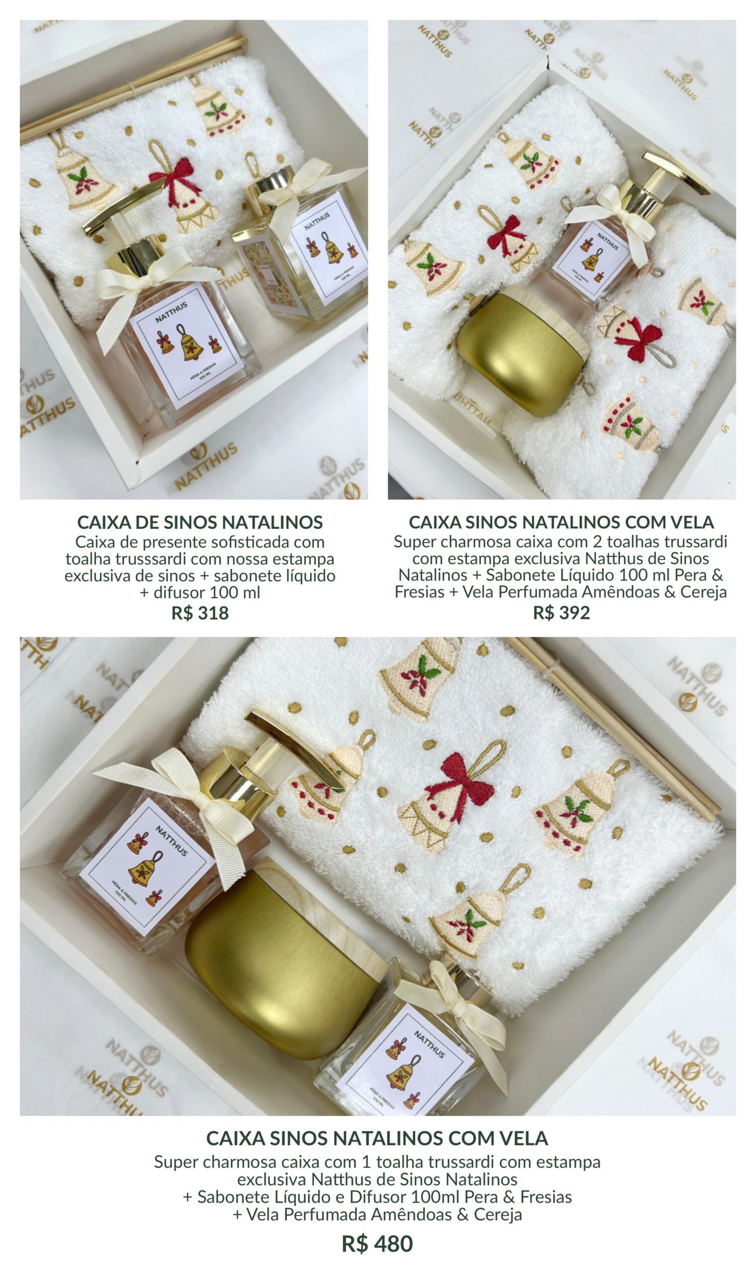 CAIXA SINOS NATALINOS COM VELA (2 TOALHAS)