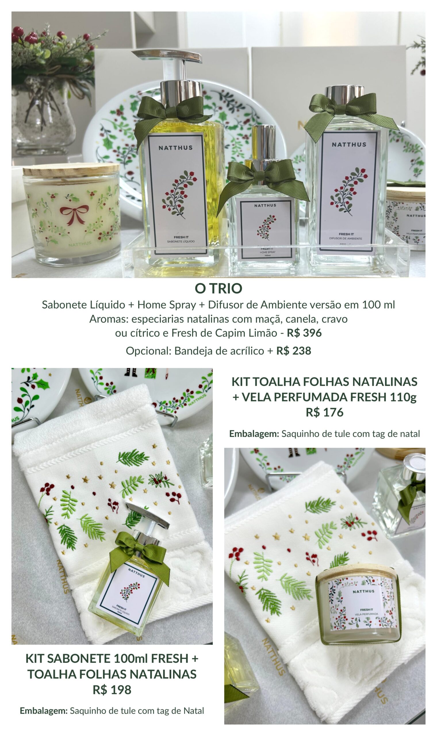 KIT TOALHA FOLHAS NATALINAS + ÁGUA PERFUMADA