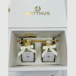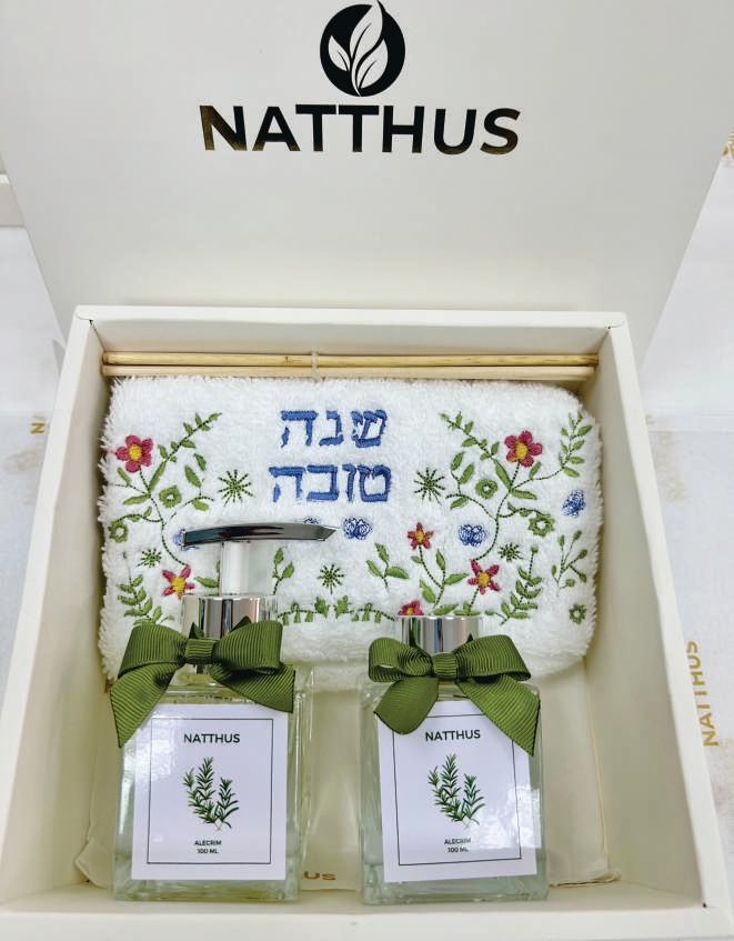 uma toalha trussardi com estampaexclusiva flores & cores + sabonete líquido+ difusor de ambiente 100 ml alecrim