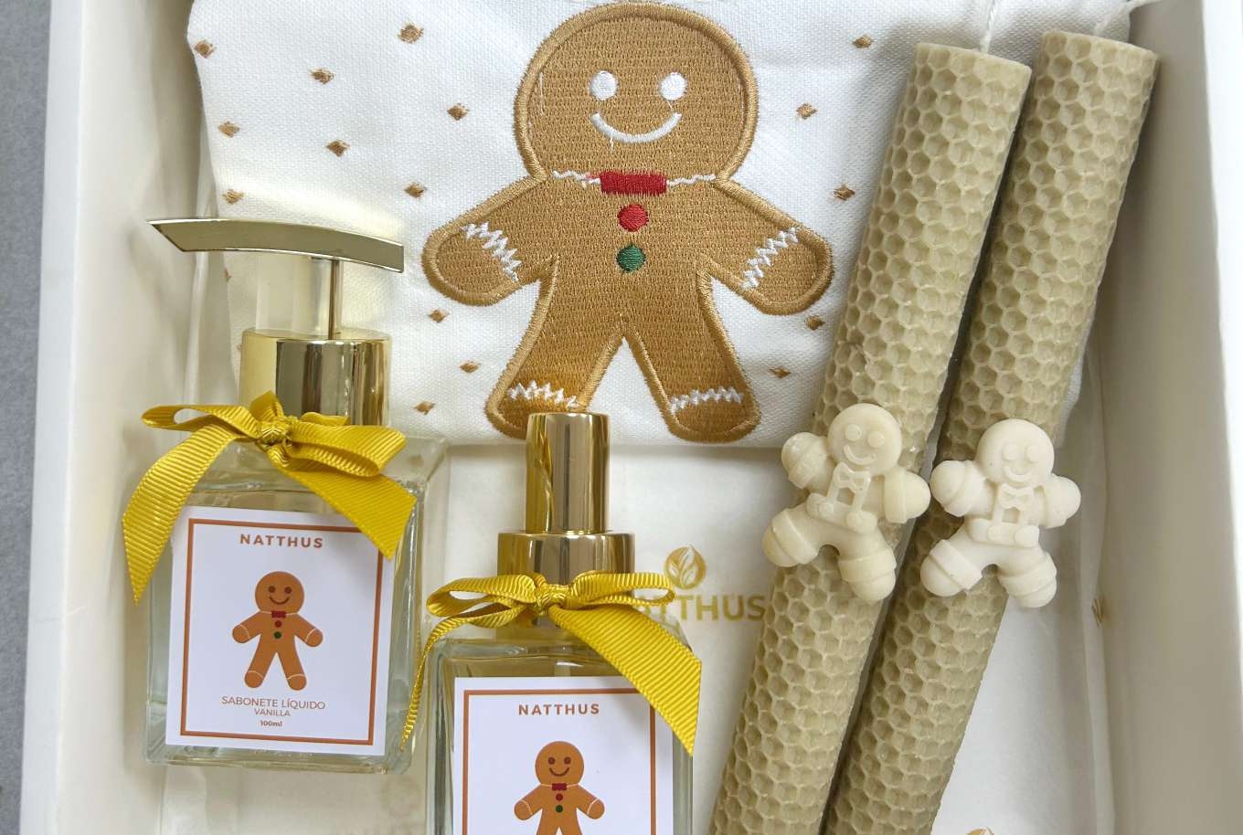 Sabonete 100 ml vanilla + home spray 100 ml vanilla + dupla velas de mel + toalha Ginger.