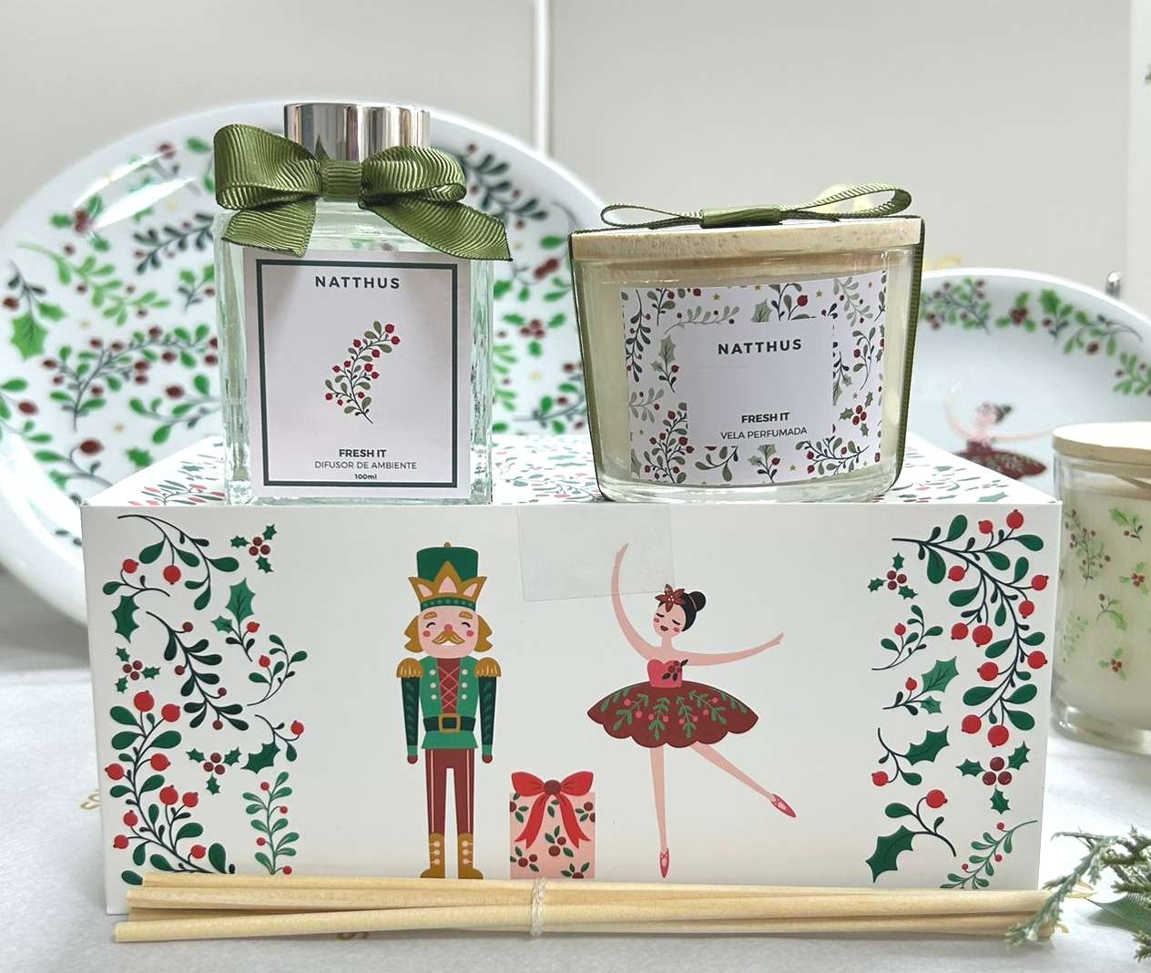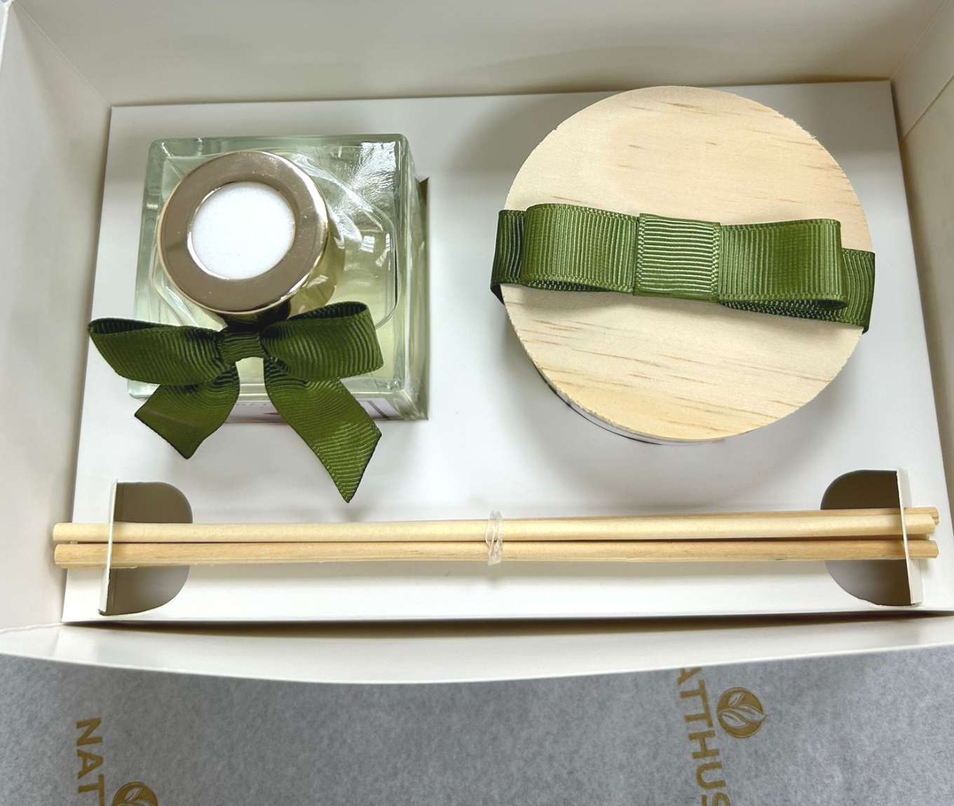 Difusor 100 ml + vela Fresh com tampa de madeira 110g.