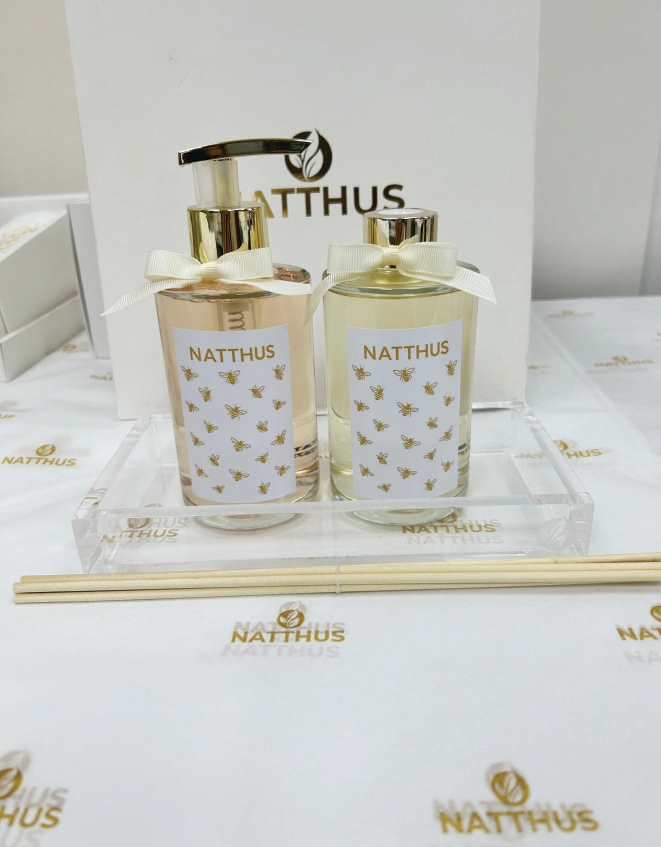 opção de vidros redondos com bandejade acrílico: sabonete líquido 250 ml+ difusor de ambiente 250 ml+ bandeja de acrílico grosso