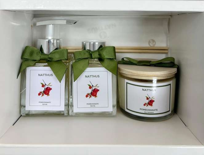 Sabonete líquido + difusor + vela perfumada Romãs 100 ml.