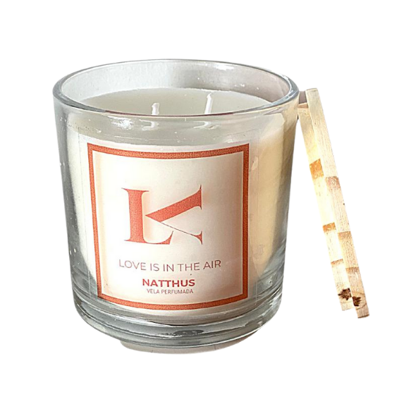 Vela “Love is in the Air” afrodisíaca. Em cera de soja 220g com duração cerca de 35h e
